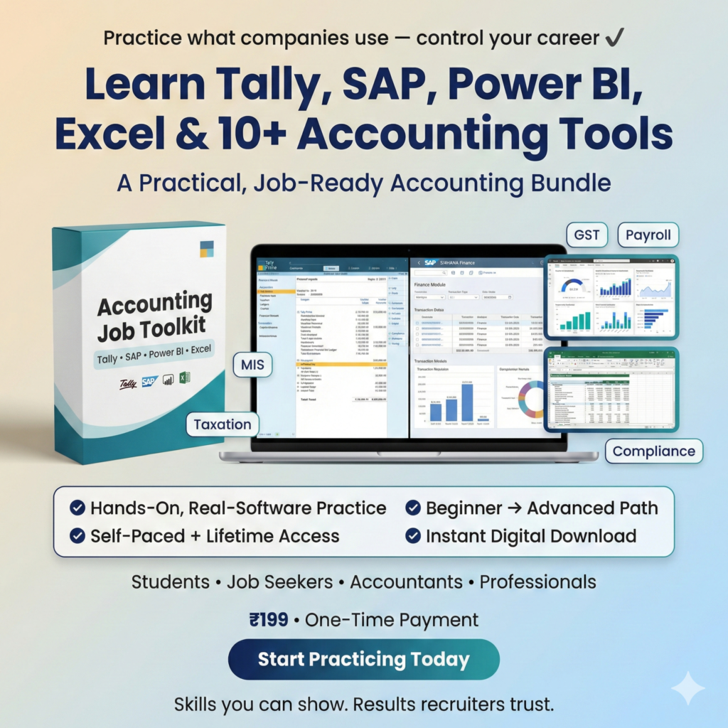 You’ll learn Tally Prime, Tally ERP 9, SAP S/4 HANA, SAP FICO, Power BI, Sage 50, MS Excel, Word, Access & PowerPoint – all in one package.